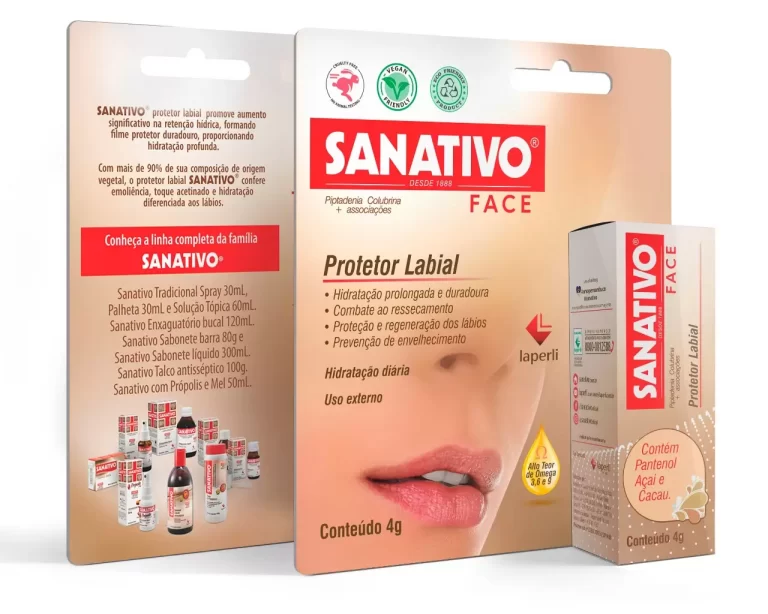 SANATIVO®️ Protetor Labial promove o aumento significativo na retenção hídrica, formando filme protetor duradouro, proporcionando hidratação profunda. Com mais de 90% de sua composição de origem vegetal, o protetor labial SANATIVO®️ confere emoliência, toque acetinado e hidratação diferenciada aos lábios.