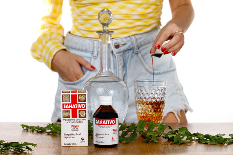 O SANATIVO®️ enxaguatório bucal traz refrescância e combate o mau hálito. Recomendado para pessoas que usam muito a voz.