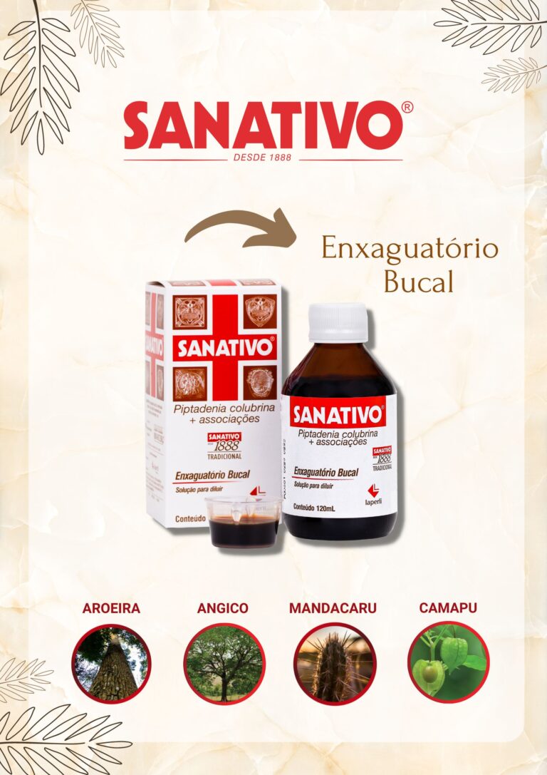 Para fazer a diluição correta, dilua 10mL do SANATIVO® (use o copo medidor) em 100mL de água. Faça bochecho durante 30 segundos, duas vezes ao dia ou conforme desejar.